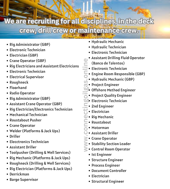 We are recruiting for all disciplines, in the deck crew, drill crew or maintenance crew.